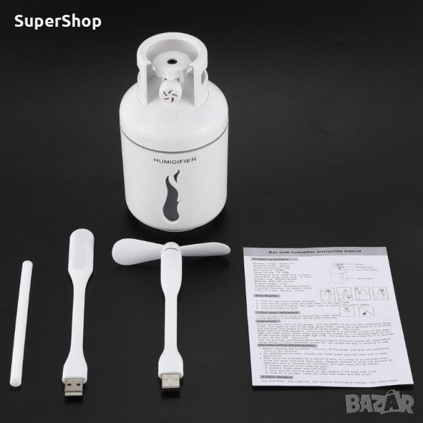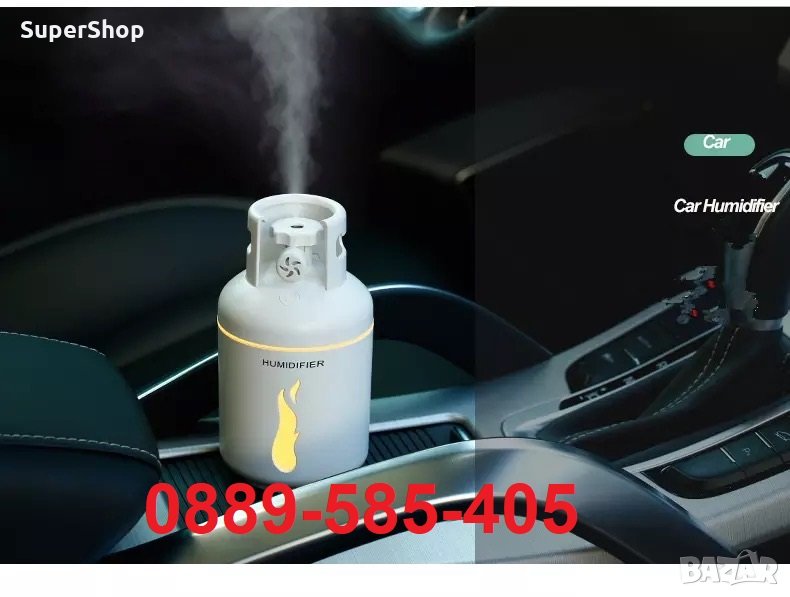 Ултразвуков арома дифузер подходящ и като силен ароматизатор за кола. Той е идеален за поддържане на влажен въздух, което спомага за борба с настинките и гриповете. Също така има функция вентилатор, нощна лампа и външен тампон за повече аромат.
