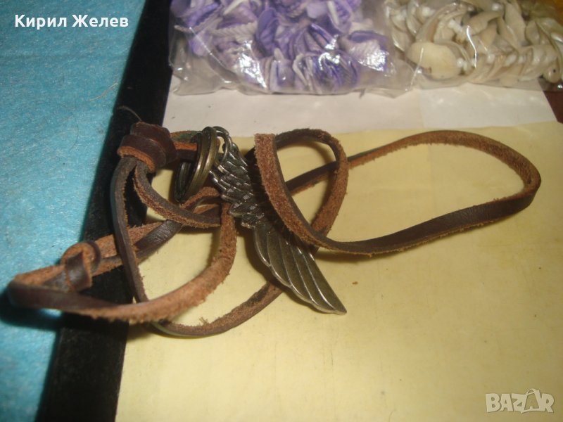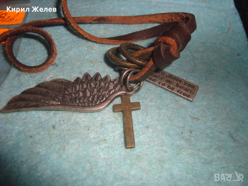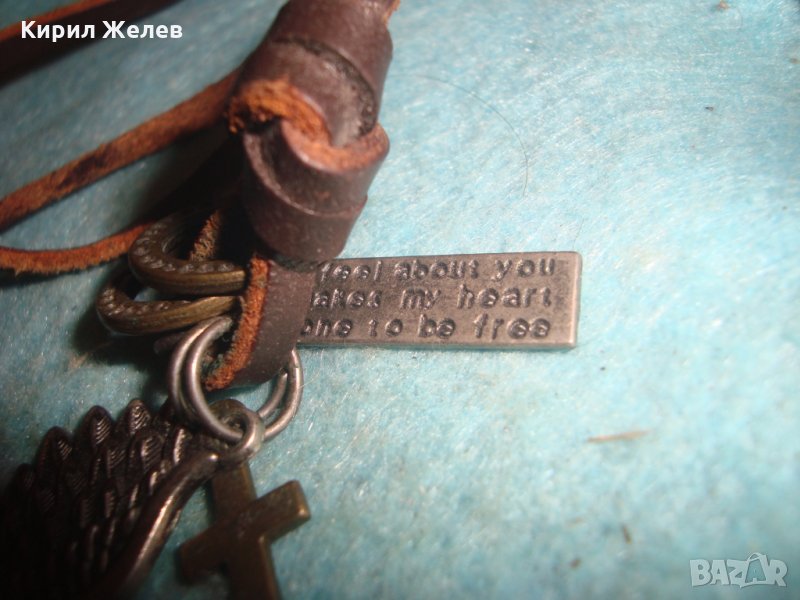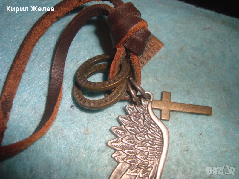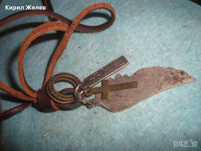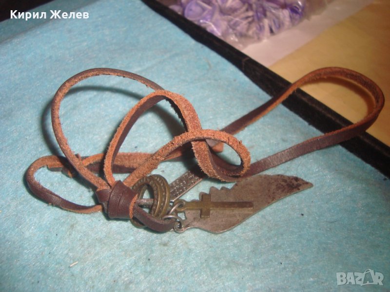 МОДНО АРТ КОЛИЕ ПОСРЕБРЕНО БРОНЗ с КРЪСТЧЕ и ШНУРЧЕ от ВЕЛУР 27121