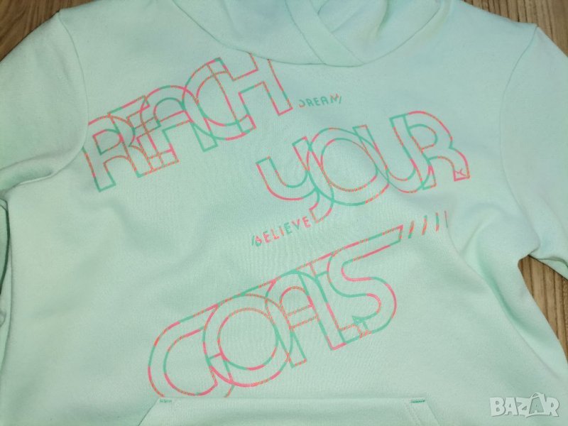 Детски суичър DECATLON, ли140/150см., 10-12г., мекичък, цвят резидав. С качулка, с джоб отпред. Много запазен, отлично състояние.
