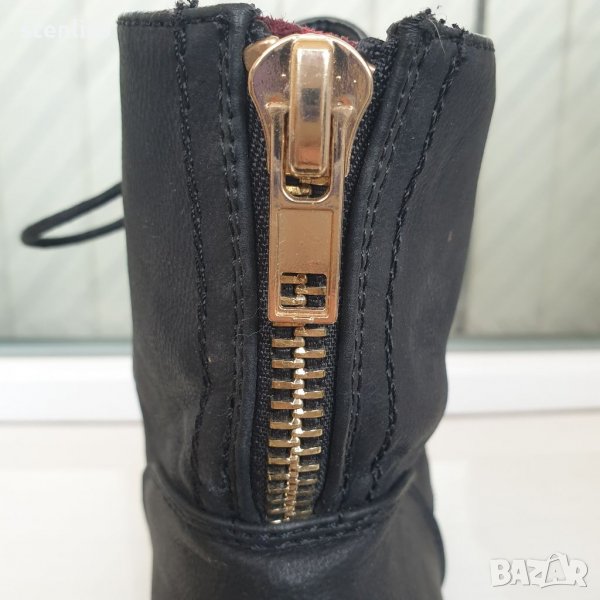 с връзки отпред и със златисти метални ципове отзад с червен акцент платка