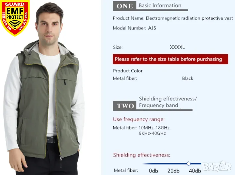 Обхват на защитно екраниране при следните честоти: 75GHz-100GHz с ефективност на защитното екраниране: 29.8dB-45dB.
