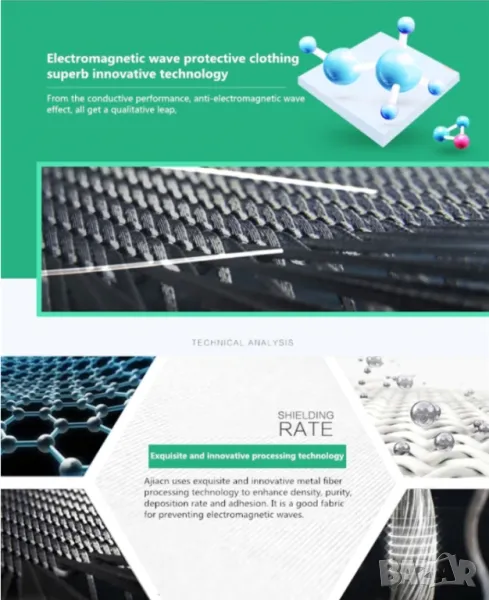 Материал на тъканта: 27% стоманени метални влакна, 37.1% памук, 35.9% полиестерни влакна.
