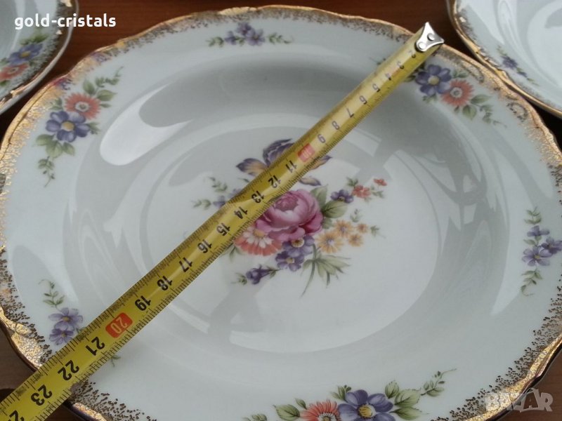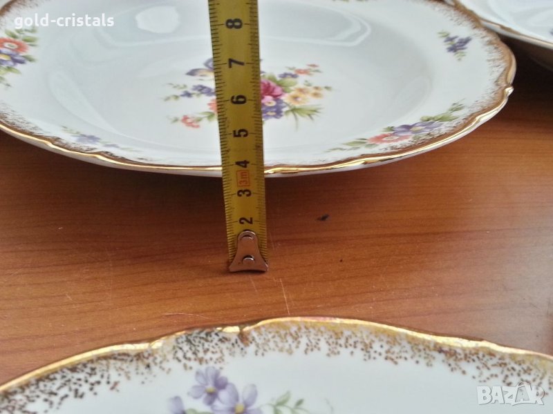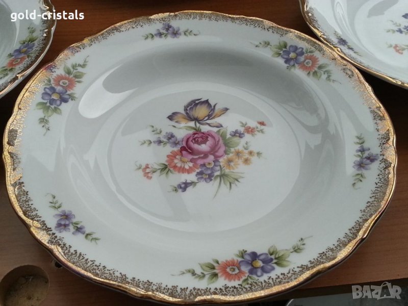 Порцеланови чинии сервиз Бавария 6бр дълбоки 6бр за основно 6бр за предястие 1бр кръгло плата поднос с много позлата без забележки сервиз комплект сет лот ретро арт декор винтидж колекция старинни антикварни предмети обзавеждане за дома и семейството подходящи за подарък за ценители и колекционери