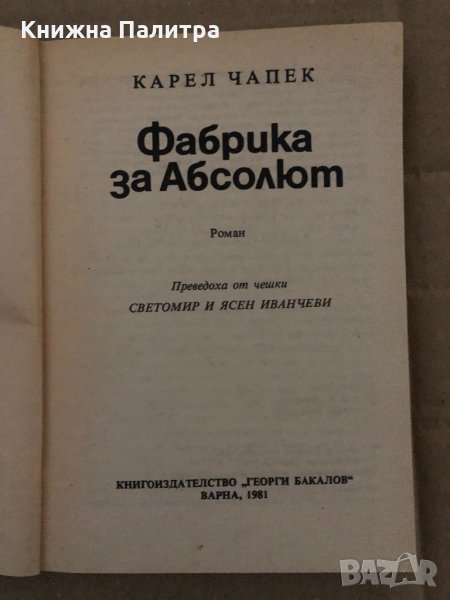 Фабрика за Абсолют -Карел Чапек → Обява 35089545