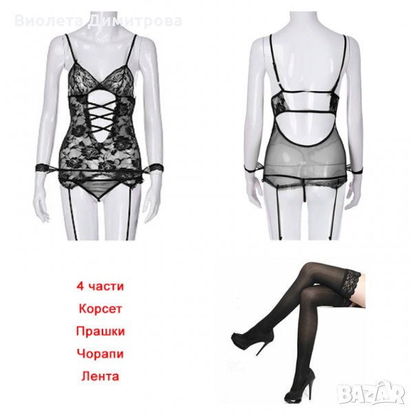 Дамски комплект от 4 части: корсет, прашки, лента и чорапи