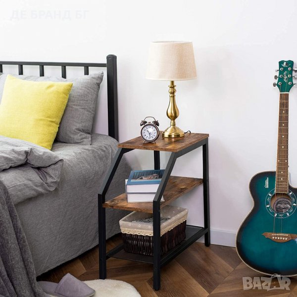 Тази странична масичка с 3 отворени рафта е компактно и функционално решение за вашия дом. Металната конструкция и винтидж дървесните панели в сиво гарантират здрава и издръжлива конструкция.