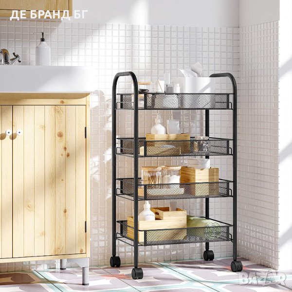 върху 4 колелца, въртящи се на 360 градуса, което осигурява максимално удобство