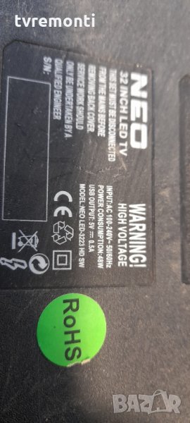 ОСНОВНА ПЛАТКА- CV338H-U42 for ,NEO LED-3223 Борда е гарантирано работещ Демонтиран от телевизор NEO модел LED-3223 със счупен дисплей MT3151A05-5-XC-5 тествана от нашия техник за