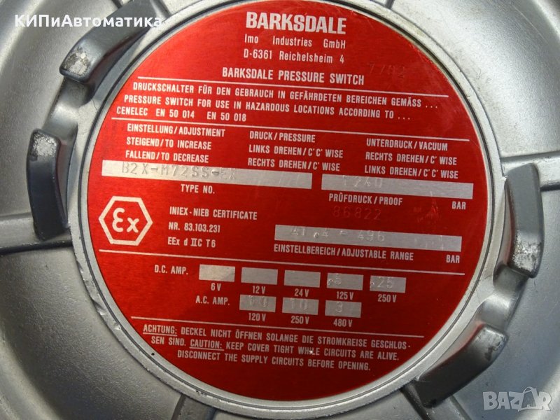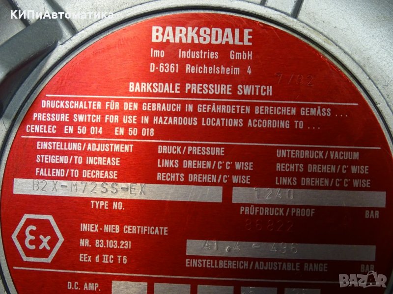 пресостат BARKSDALE Pressure Switch B2X-M72SS-EX