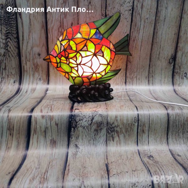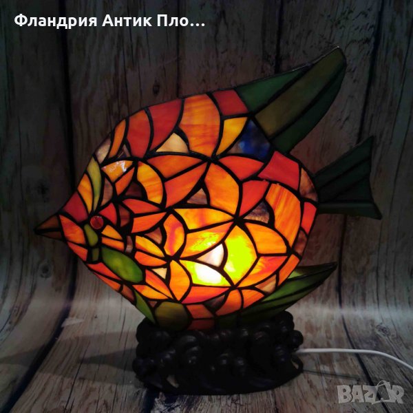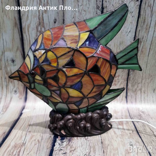 Малка настолна лампа от витражно стъкло, стил Тифани, модел "Риба".
