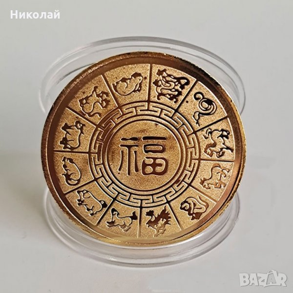 предната страна е изобразен цветен Тигър , от задната страна са изобразени всички 12 зодиака : Плъх , Вол , Тигър , Заек , Дракон , Змия , Кон , Коза , Маймуна , Петел , Куче , Прасе . Подходяща е за подарък , за късмет , щастие , колекционери или за хора родени през 1962 , 1974 , 1986 , 1998 , 2010 или подарък за бебе родено 2022 г.