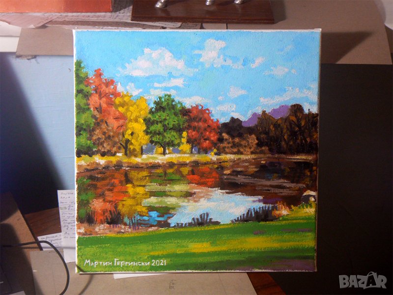 Продавам есенен пейзаж. Маслени бои върху платно с размери 30 на 30 см. Художник Мартин Гергински. 2021 г.
