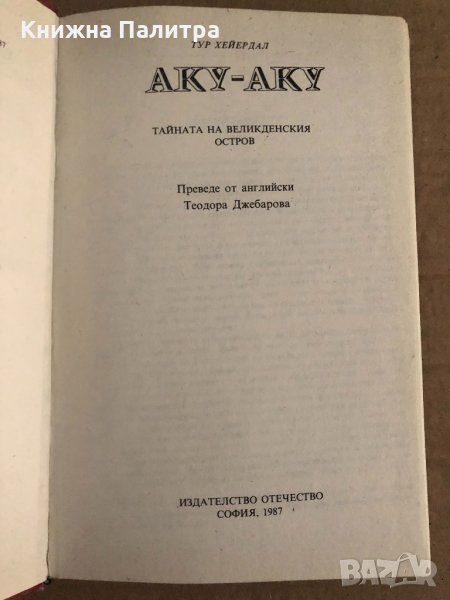 Аку-аку Тайната на Великденския остров Тур Хейердал, снимка 1 - Художествена литература - 35099897 Аку-аку Тайната на Великденския остров Тур Хейердал, снимка 2 - Художествена литература - 35099897 1/2