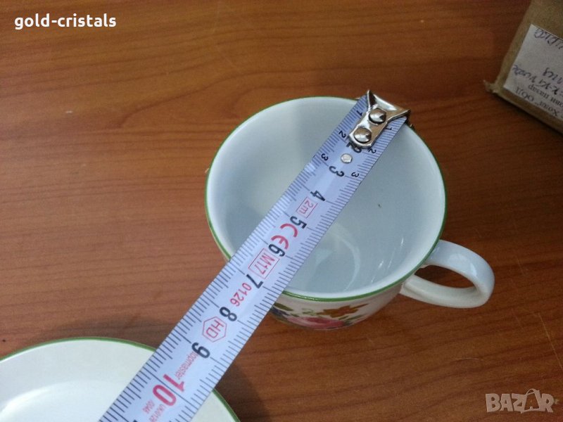 Стар български порцелан китка чаши с чинийки за кафе зелен кант неизползвани в оригиналната си кутия маркирани на Китка Нови пазар сервиз комплект сет лот ретро арт декор винтидж колекция старинни антикварни предмети обзавеждане за дома и семейството подходящи за подарък за ценители и колекционери