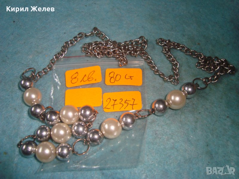 ПЕРЛЕНО АРТ ДЕКО СТИЛ КОЛИЕ със СРЕБРИСТА ВЕРИЖКА 27357