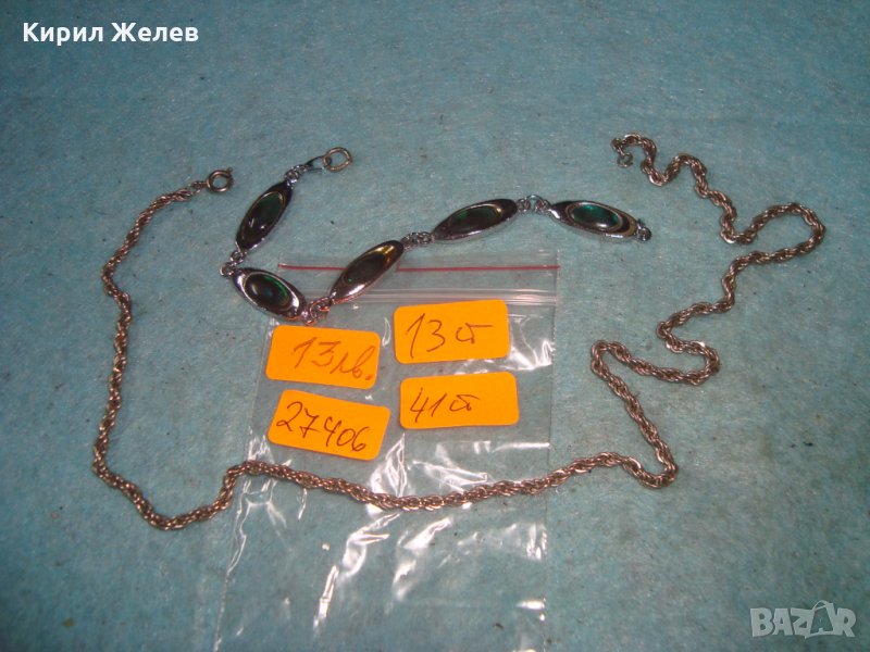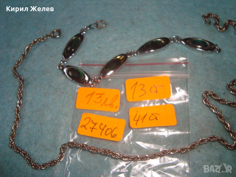 ПОСРЕБРЕН ЛАНЕЗ ВЕРИЖКАРЕТРО ЗДРАВА ПЛЕТКА и СРЕБРИСТА ГРИВНИЧКА със СЕДЕФЕН ЕФЕКТ 27406