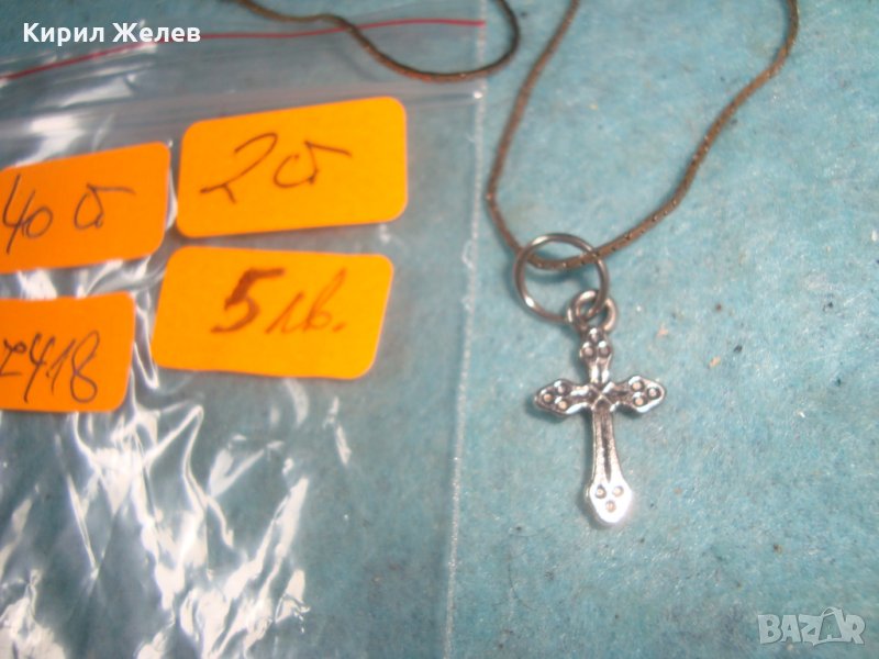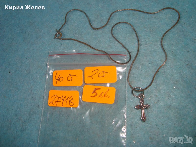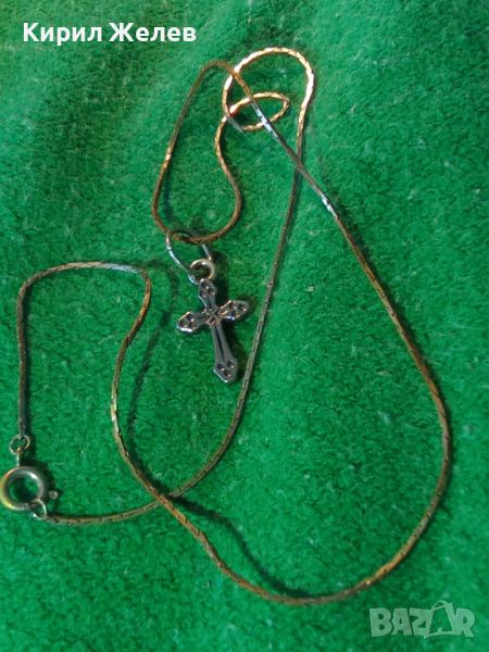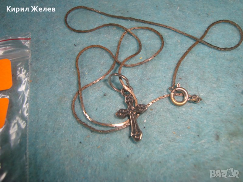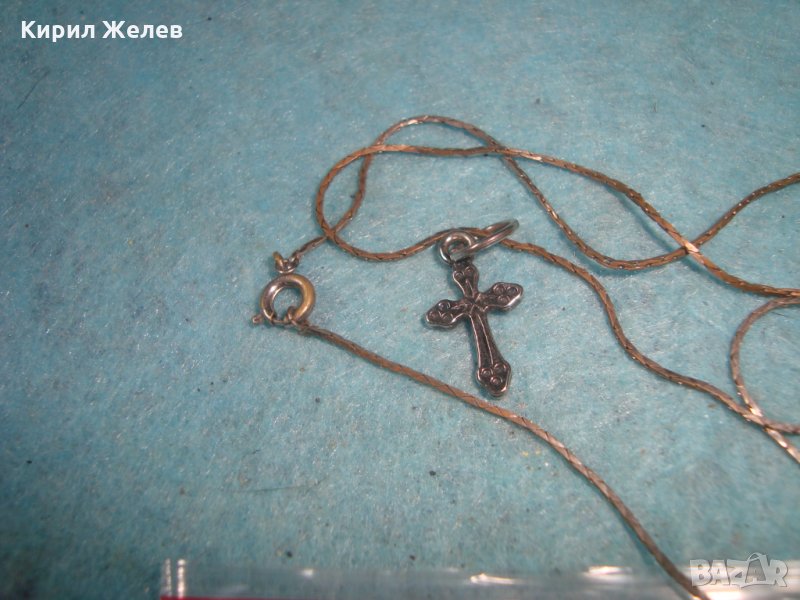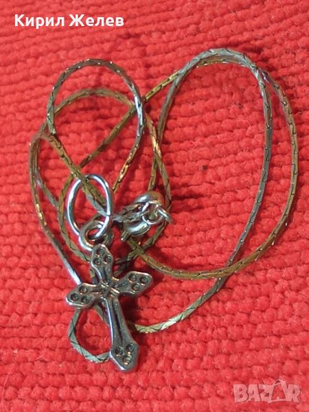 СТАРО СЕБРИСТО АРТ ОРНАМЕНТИРАНО КРЪСТЧЕ с ПОСРЕБРЕНА БРОНЗОВА СТАРА ВЕРИЖКА 27418