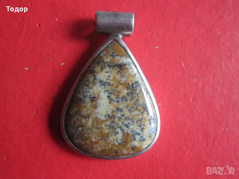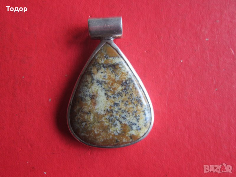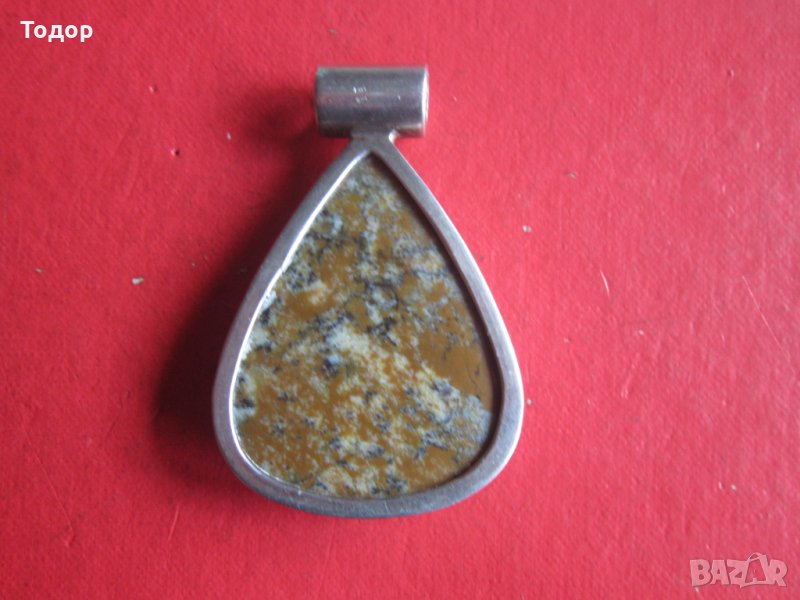 Сребърен медальон висулка колие с камък → Обява 35103256