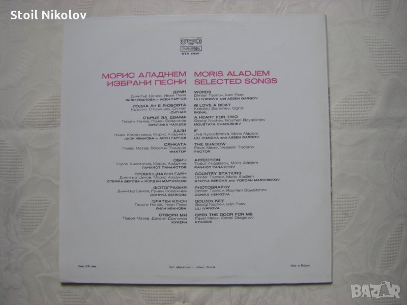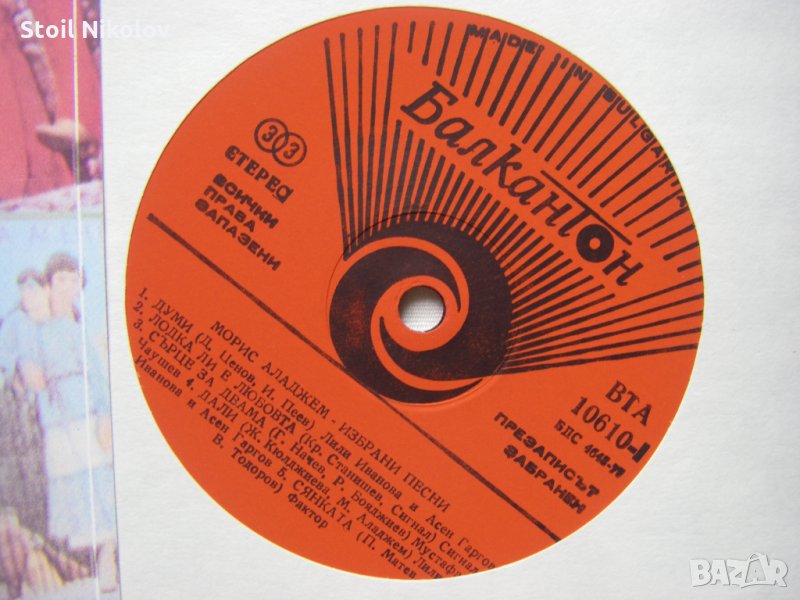 Грамофонна плоча - ВТА 10610 - Морис Аладжем. Избрани песни