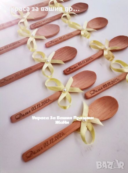 Гравирани дървени лъжички подаръчета за гостите на бебешка погача → Обява 35106763