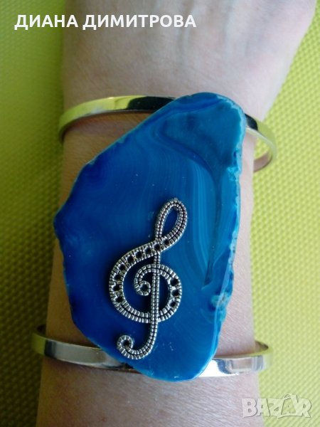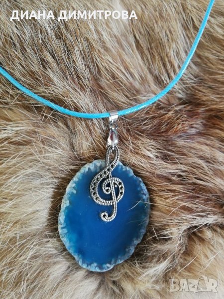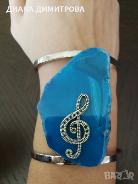 Ръчно декориран сет /комплект /гривна и колие с син морски ахат! Гривната е с отворен край /регулируема/! Подходящ подарък за рождения ден имен ден осми март юбилей или друг повод! Подарък за жена!