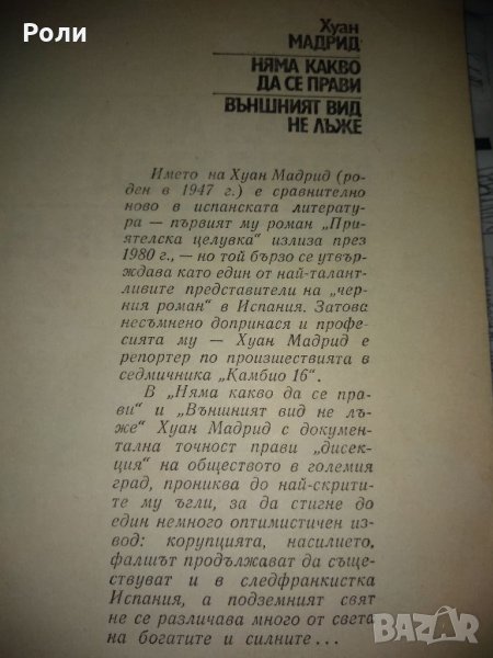 ХУАН МАДРИД- НЯМА КАКВО ДА СЕ ПРАВИ/ВЪНШНИЯТ ВИД НЕ ЛЪЖЕ, снимка 1 - Художествена литература - 35108719 ХУАН МАДРИД- НЯМА КАКВО ДА СЕ ПРАВИ/ВЪНШНИЯТ ВИД НЕ ЛЪЖЕ, снимка 2 - Художествена литература - 35108719 1/2