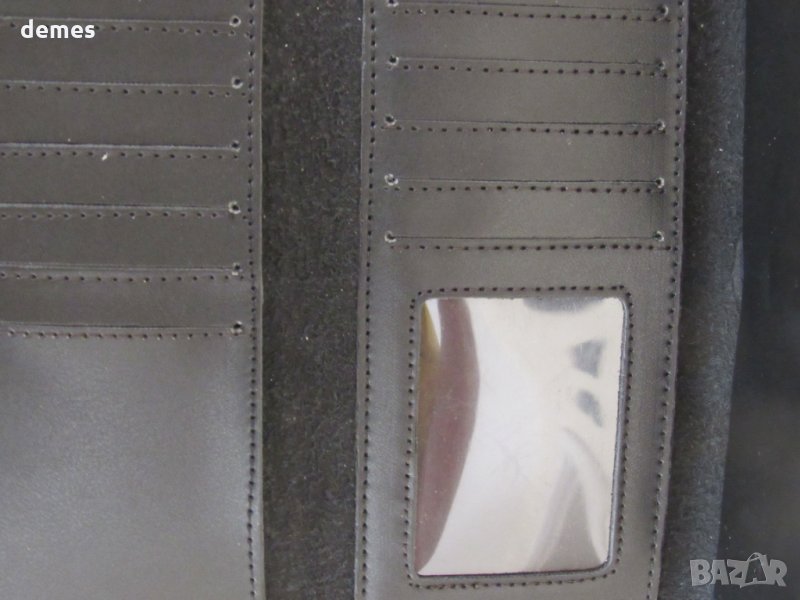 Има разпределение за банкноти, голямо отделение с цип монети, вътрешен джоб, отделение за лична карта и 10 кредитни и дебитни карти.