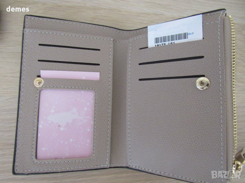 Има разпределение за банкноти, голямо отделение с цип монети, вътрешен джоб, отделение за лична карта и 5 кредитни и дебитни карти.