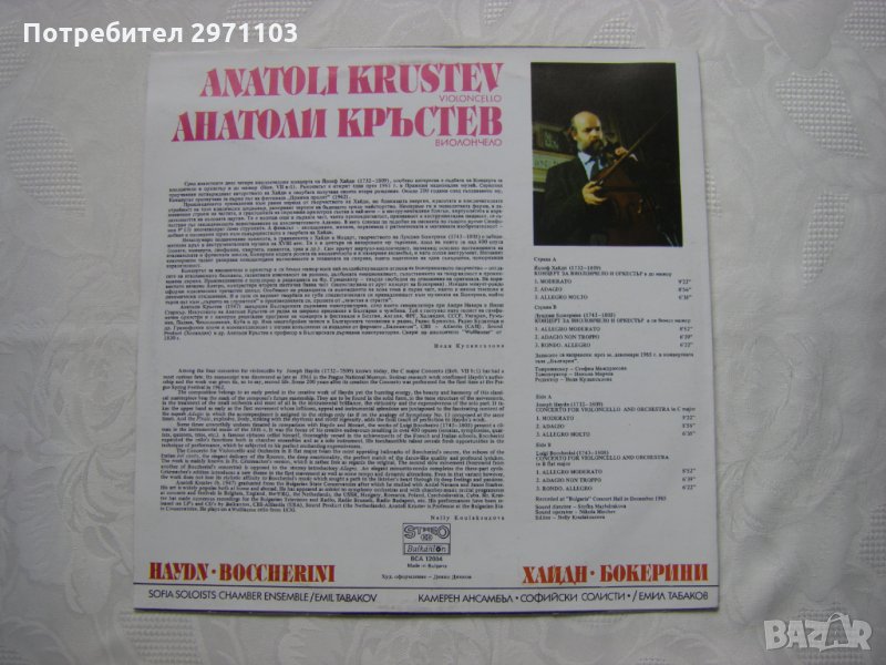 Грамофонна плоча - ВСА 12004 - Анатоли Кръстев - Виолончело