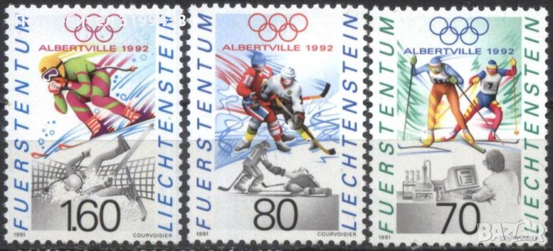 Чисти марки (3) Олимпийски игри Албервил 1992 от Лихтенщайн 1991.