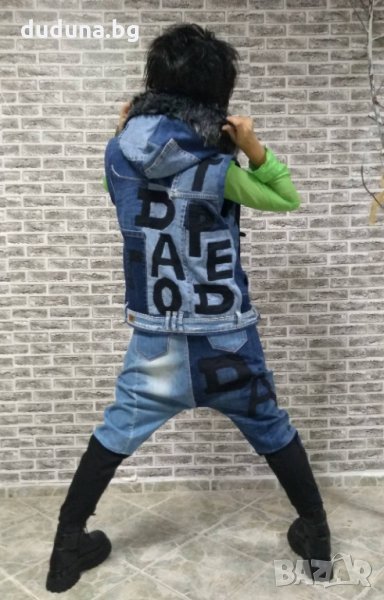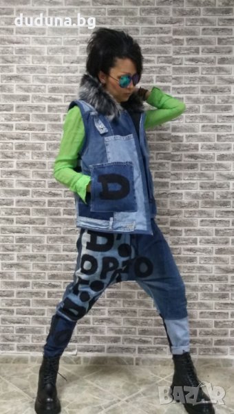 Чаровен дамски екип дънков с букви с пух! Чанта с букви 75лв./38,35€.