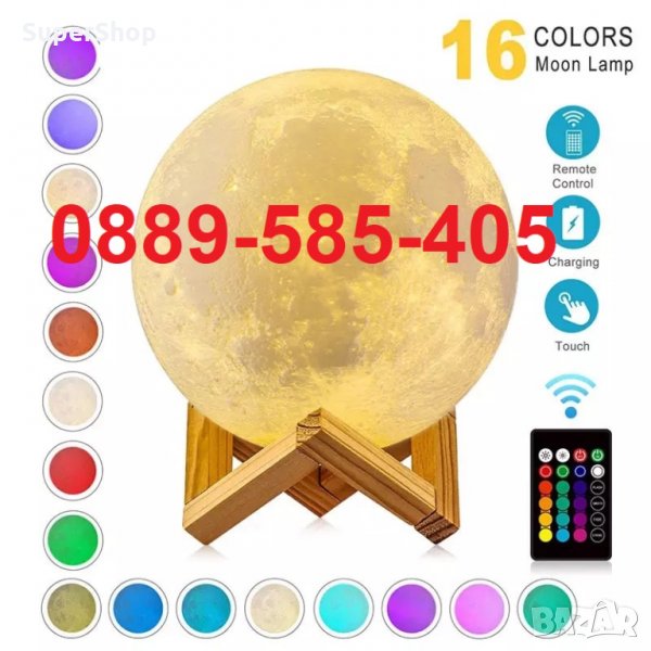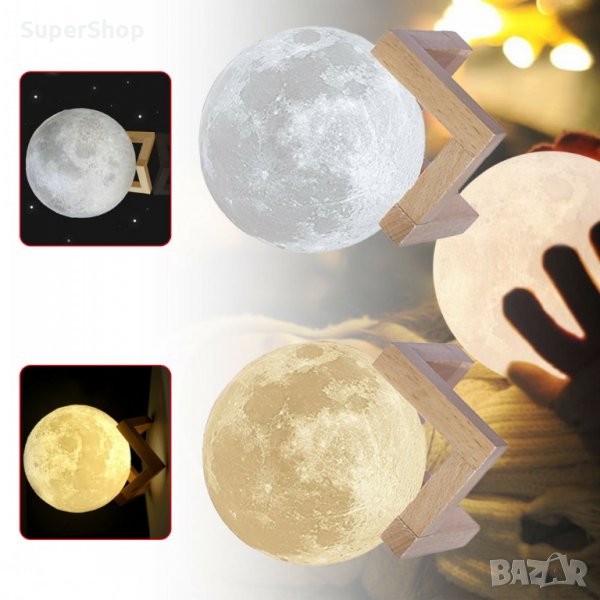Тази нощна лампа свети в различни цветове. С реалистичната си 3D форма копира истинския релеф на Луната, и лампата преминава през всички нейни фази със сменящи се режими на светене чрез докосване. Светлината и е мека и ненатрапчива.