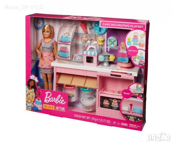 Кукла Barbie® и комплектът за приготвяне и декориране на торти са готови да помогнат на децата да направят своята "торта" и да я украсят също!