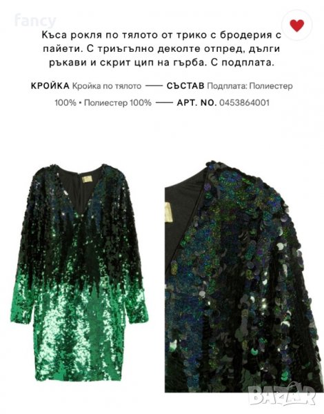 Зелена празнична рокля H&M с пайети → Обява 35123443