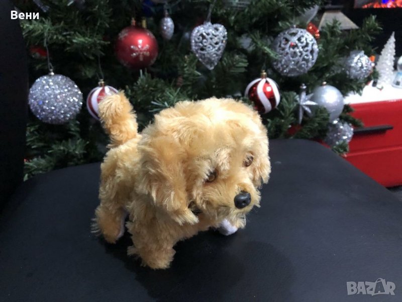 Забавно ходещо и лаещо кученце. Когато е включено ходи, лае, движи главичката и опашката си и очите му светят. Работи с батерии 2/1.5v., включени в цената. Размери 15/8/12см.. Изпращам със Спиди или Еконт с преглед и тест!