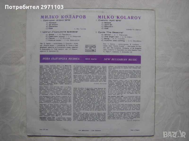 Грамофонна плоча - ВХА 10472 - Милко Коларов - Нова Българска Музика