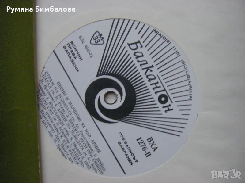 Грамофонна плоча - ВХА 1276 - Песни и маршове за народната армия