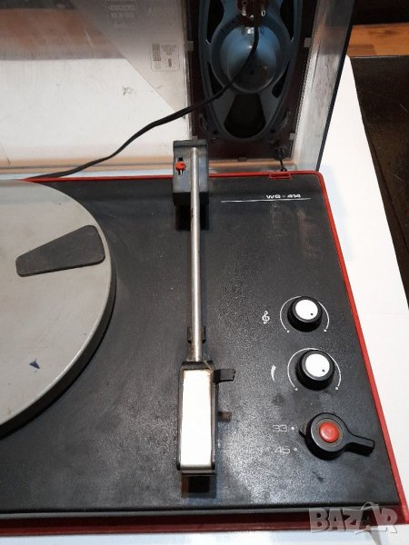 Стар грамофон Unitra-fonica WG 414.Състояние видно на снимките запазен за годините си,не знам дали работи, здрав говорител,мотор също тоест върти се поставка за плочи на двете си степени на 33 и 45 оборота, игла в наличност . Трябва да го погледне някой специалист. За декор, интериор и евентуално по предназначение.