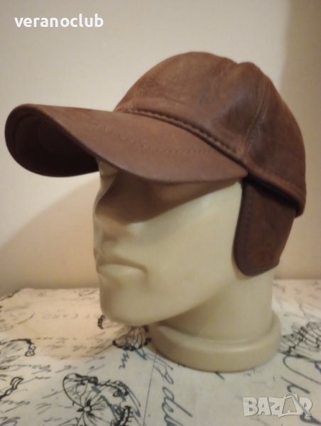 Зимна мъжка шапка от естествена кожа - набук в тъмнокафяв цвят. Шапката е с козирка, отзад е затворена и има ушички , които могат да се спускат надолу. На снимките в момента са спуснати.