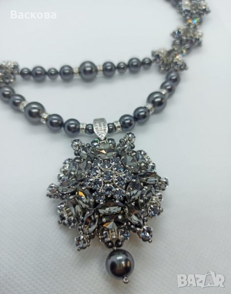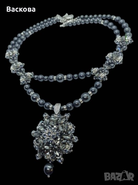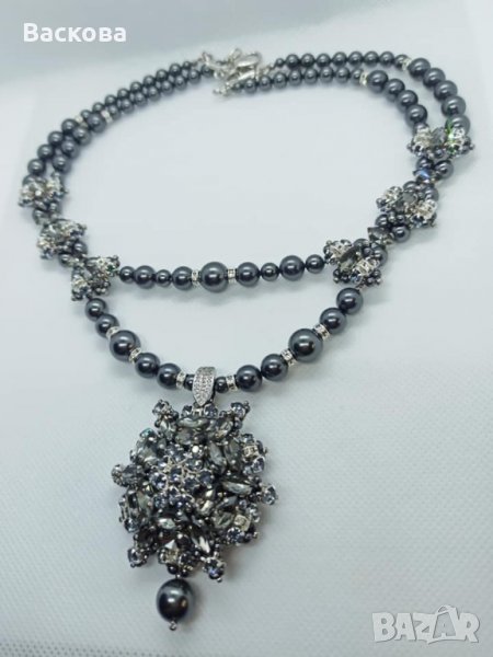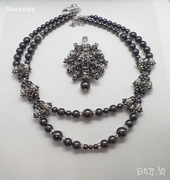 Ръчно изработено колие от черни перли Сваровски → Обява 35132777