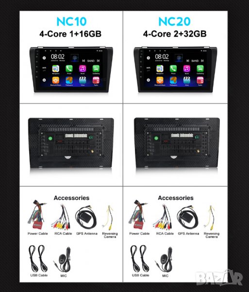 4GB+64GB цена 429.90лв, 8-ядрен процесор, Android Auto, CarPlay, Wi-Fi, RDS, AHD камера