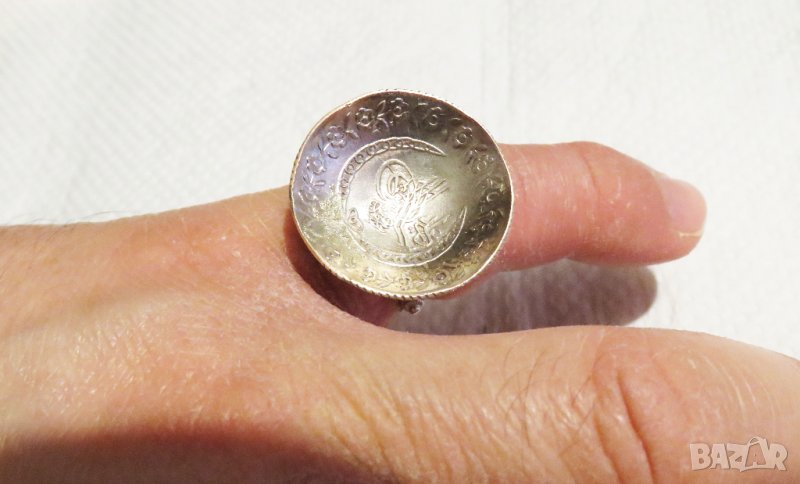 мъжки сребърен пръстен, Стар османски сребърен пръстен с голяма, тугра, тура, турски пръстен сребро