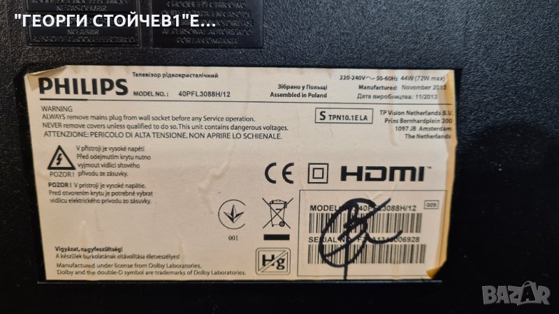 PHILIPS 40PFL3088H/12 С Гаранция 6м. → Обява 35139456
