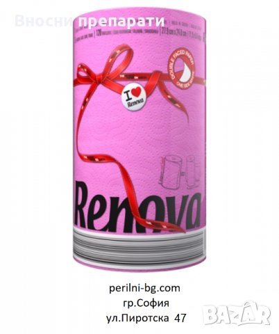 Ренова цветна кухненска ролка, жълта, оранжева, синя, цикламена, зелена, червена. Renova Kitchen Roll представлява силно абсорбираща, здрава, двупластова кухненска ролка. За по-голяма трайност тези ролки са по-високи и по-широки, с три пъти повече кърпи от стандартните ролки на Renova. Облечете кухнята си в стил и изненадайте гостите си с кухненската хартия от Renovo! Кухненската ролка е съставена от 120 листа. Когато хартията е мокра, не е подходяща за контакт с текстил