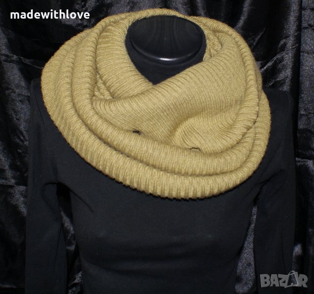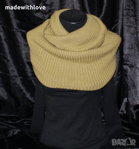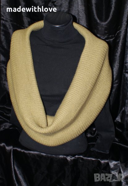Цвят бежев. Позволява увиване до 2 пъти около врата. Ширината му позволява да се носи и като качулка на главата.