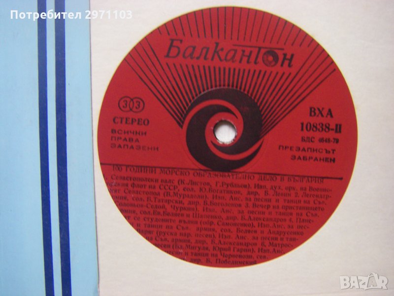 Грамофонна плоча - ВХА 10838 - 100 години морско образователно дело в България