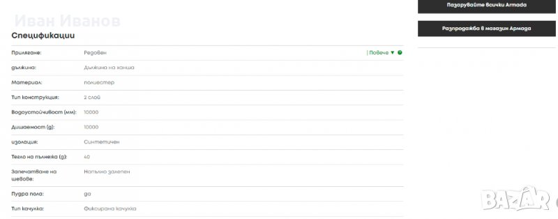 Цена в сайта на марката около 300 лева