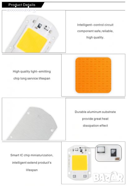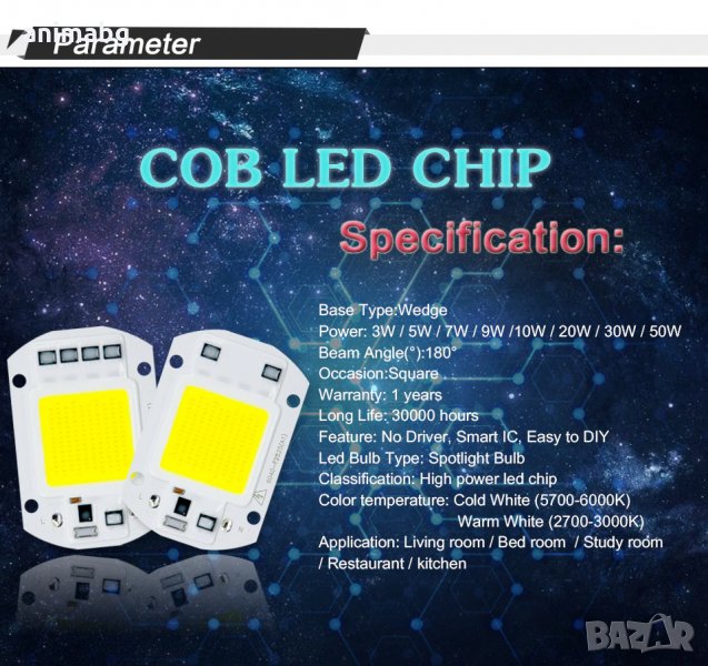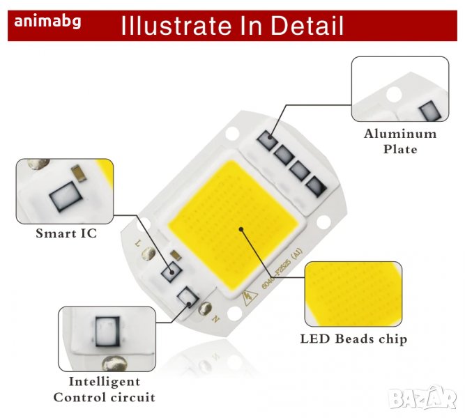 ANIMABG Студено бял COB светодиод 50W 220V