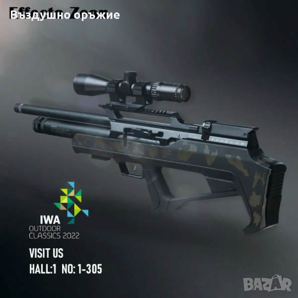1. Effecto Zeon LW PCP , калибър 4.5/5.5/6.35мм , 2 броя пълнителя (барабани) , модератор , О-пръстени , щуцер за зареждане , 1 кутия чашки.