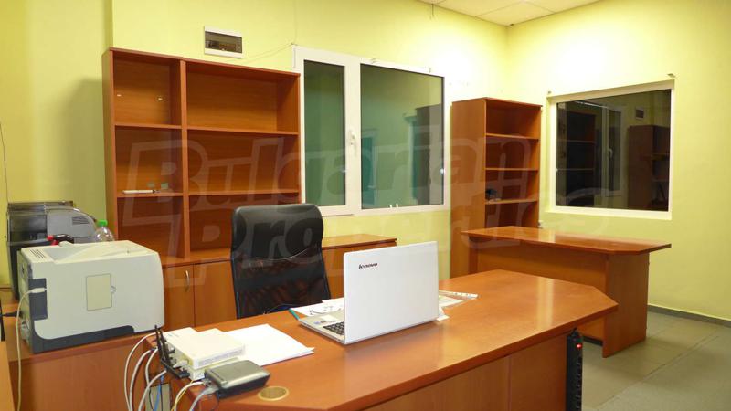 Складът е оборудван с рафтове и се отдава с обзаведени офиси, снабдени с климатици, стаята за персонала - ел. радиатор, подови настилки - ламинат и теракот.